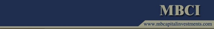 This web site is for the exclusive use of those authorized by MB Capital Investments. The material contained on this site is believed to be accurate at the time it was posted, but is provided to users “AS IS” without any express or implied warranty as to availability, reliability, merchantability, non-infringement, accuracy, completeness, timeliness, fitness for a particular purpose or otherwise. The site does not constitute an offer or solicitation of any kind.